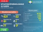 Nous avons enregistré 03 nouveaux cas positifs sur 1 435 tests réalisés, soit un taux de positivité de 0.2%, 01 personne hospitalisée dont 00 en réanimation, 06 nouvelles guérisons et 00 nouveau décès.