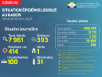 En matière de surveillance épidémiologique, sur les 5 077 prélèvements effectués, nous avons enregistré 101 nouveaux cas positifs, soit un pourcentage de 2%. Les cas sont répartis comme suit : Estuaire : 86 nouveaux cas positifs sur 4 832 prélèvements à Libreville, soit un total de 7 372 cas confirmés ; (…) -