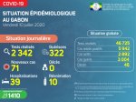 Situation épidémiologique En matière de surveillance épidémiologique, sur les 2 342 prélèvements effectués, nous avons enregistré 71 nouveaux cas positifs, soit un pourcentage de 3%. Les cas sont répartis comme suit : Estuaire : 61 nouveaux cas positifs sur 2 116 prélèvements à Libreville, soit 4 547 cas positifs ; Ngounié : 1 (…) -