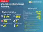 Nous avons enregistré 60 nouveaux cas positifs sur 5 174 tests réalisés, soit un taux de positivité de 1.2%, 37 personnes hospitalisées dont 17 en réanimation pour détresse respiratoire, 365 nouvelles guérisons et 00 nouveau décès. La répartition des nouvelles contaminations est comme suit : Estuaire : 33 nouveaux cas positifs sur 4 (…) -