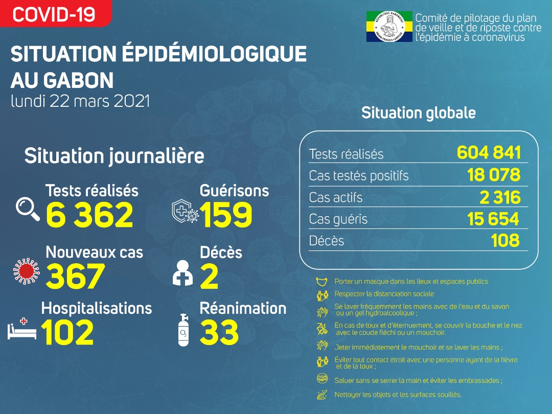 Coronavirus au Gabon : point journalier du 22 mars 2021
