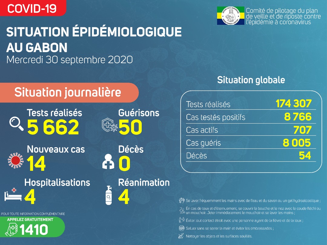 Coronavirus au Gabon : point journalier du 30 septembre 2020