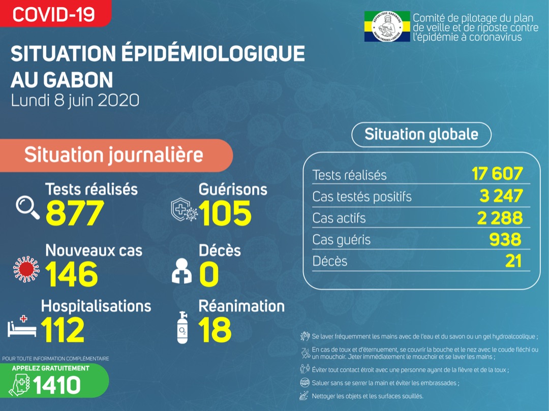 Coronavirus au Gabon : point journalier du 8 juin 2020