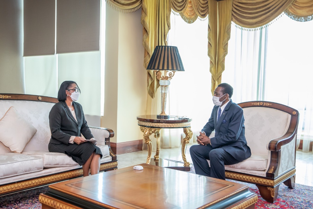 Dépêché à Bata par le Président de la République, S.E.M. Ali Bongo Ondimba, quelques jours après la catastrophe qui a frappé la capitale économique de la Guinée-Équatoriale, le Premier Ministre, chef du gouvernement, Madame Rose Christiane Ossouka Raponda, a été reçu ce jour par le Président équato-guinéen, S. E.M. Teodoro Obiang Nguema Mbasogo.