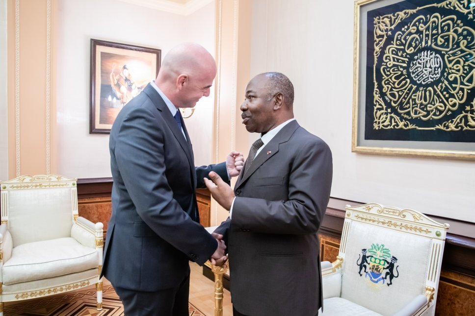 Ali Bongo a reçu ce mardi en audience Messieurs Giovanni Vincenzo Infantino ; Stephen Jackson et Arthur Nkoumou Delaunay, respectivement Président de la Fédération Internationale de Football Association (FIFA), Coordonnateur Résident du Système des Nations Unies au Gabon et Directeur Général de l’Agence Nationale de l’Aviation Civile (ANAC).