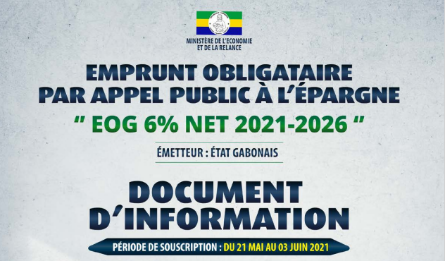 Le ministère de l’Economie et de la Relance informe le public de la clôture de l’opération d’emprunt obligataire par appel public sur le marché financier de la sous-région dénommé « EOG 6% NET 2021-2026 » lancée le 28 mai dernier à Libreville.