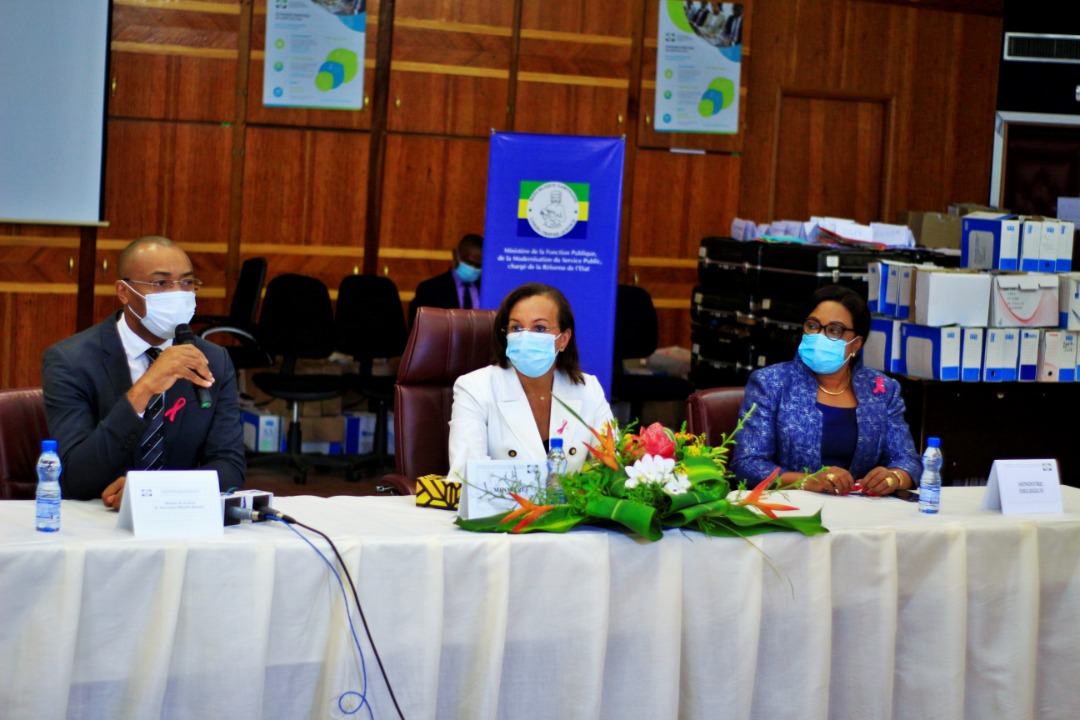 Dans le cadre de la lutte contre la propagation de la COVID-19 en milieu professionnel, le Ministre de la Fonction Publique Madeleine E. BERRE, le Ministre Délégué, Sylvine Aubierge NGOMA et le Ministre de la Santé Guy Patrick OBIANG NDONG, ont rencontré ce jeudi, l’ensemble des Secrétaires Généraux des ministères, sur instruction du Président de la République Chef de l’Etat, Son Excellence Ali BONGO ONDIMBA, et de Madame le Premier Ministre chef du Gouvernement, Rose Christiane OSSOUKA RAPONDA.