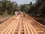 Guy Patrick Obiang Ndong réfectionne un pont détruit par les pluies dans son village