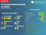 Nous avons enregistré 21 nouveaux cas positifs sur 6 082 tests réalisés, soit un taux de positivité de 0.3%, 11 personnes hospitalisées dont 08 en réanimation pour détresse respiratoire, 25 nouvelles guérisons et 00 nouveau décès.
