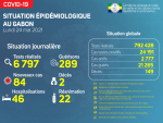 Nous avons enregistré 84 nouveaux cas positifs sur 6 797 tests réalisés, soit un taux de positivité de 1.2%, 46 personnes hospitalisées dont 22 en réanimation pour détresse respiratoire, 289 nouvelles guérisons et 02 nouveaux décès à Libreville (1) et Oyem (1). La répartition des nouvelles contaminations est comme suit : Estuaire : (…) -