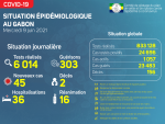 Situation épidémiologique Nous avons enregistré 45 nouveaux cas positifs sur 6 014 tests réalisés, soit un taux de positivité de 0.7%, 36 personnes hospitalisées dont 16 en réanimation pour détresse respiratoire, 303 nouvelles guérisons et 02 nouveaux décès à Libreville (1) et à Lambaréné (1). La répartition des nouvelles (…) -