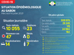 Nous avons enregistré 47 nouveaux cas positifs sur 10 055 tests réalisés, soit un taux de positivité de 0.5%, 14 personnes hospitalisées dont 07 en réanimation pour détresse respiratoire, 23 nouvelles guérisons et 00 nouveau décès. La répartition des nouvelles contaminations est comme suit : Estuaire : 23 nouveaux cas positifs (…) -